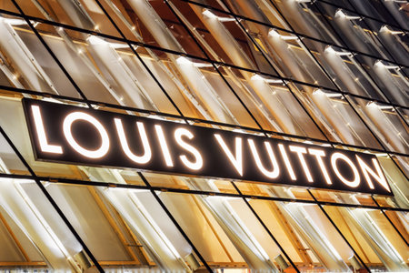SINGAPORE - CIRCA JANUARY, 2020: close up shot of LV sign as seen at ION Orchard shopping mall in Singapore.