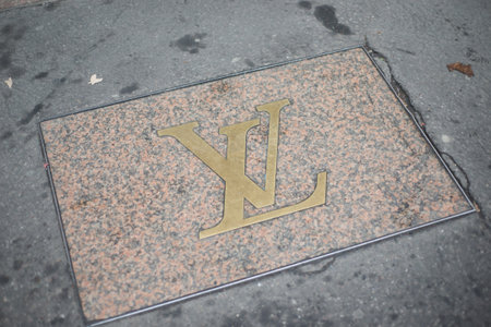 Strasbourg - France - 1 January 2020 - Closeup of Louis Vuitton logo in the pavement in front of a luxury fashion store