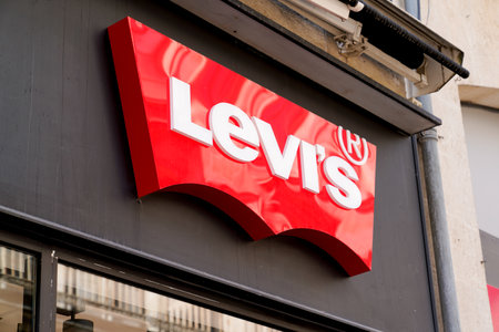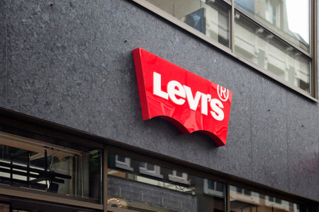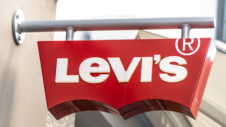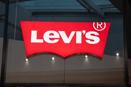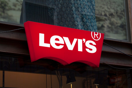 Levi's logo at street, Levi Strauss & Co. is an American clothing company known worldwide for its Levi's brand of denim jeans.