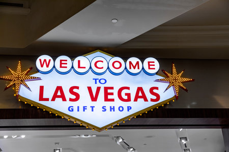 Las Vegas, USA - Jun 23, 2022: Las Las Vegas gift shop sign in a shopping mall.