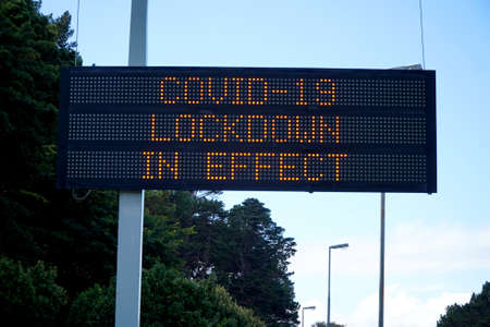 Cape Town, South Africa - 16 April 2020 : Empty streets of Cape town, South Africa during the lock down, with warning sign.