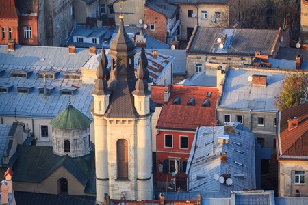 view from above on roofs of houses of city of Lviv.