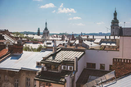 View of Lviv from the roof at sunny day.