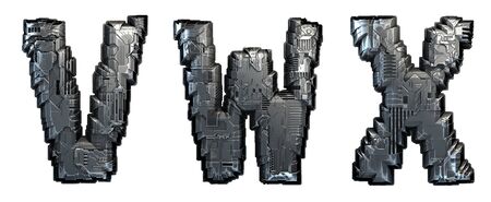 Set of capital letters V, W, X made of ice isolated on white background. 3d rendering