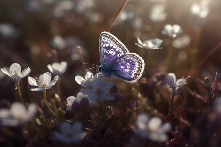 Generative AI Image of Butterfly Perched on Beautiful Flower in Park Garden Field at Bright Day
