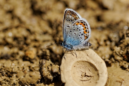 Close up of Plebejus idas, the Idas blue or northern blue butterfly
