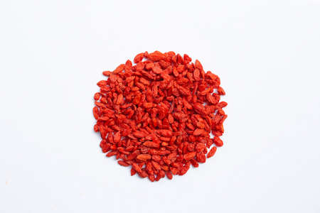 Dried goji berries on white background. Top view