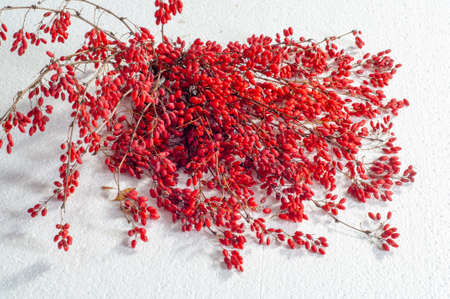 Branch with ripe red goji berry on abstract grey background