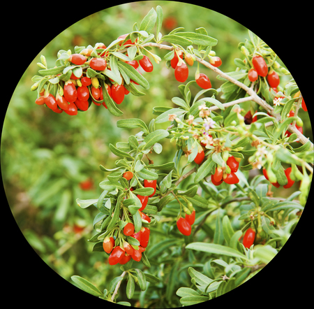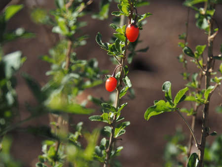 ripe goji berries on a goji berry plant (Lycium barbarum)