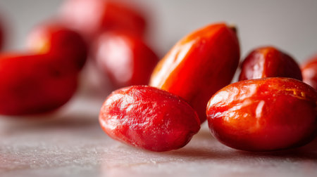 A captivating display of dried red fruits arranged on a light surface, highlighting their vivid appearance and unique textures, ideal for culinary inspiration.