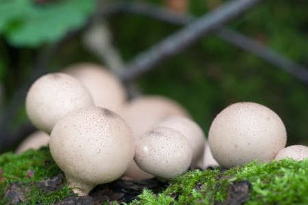 group mushrooms (Lycoperdon perlatum) in natural environment