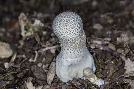 Australian white spiny Puffball Mushroom Fungus Vascellum curtissii emerging after rainy weather