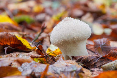 puffball and dead leaves in autumn, Lycoperdon perlatum