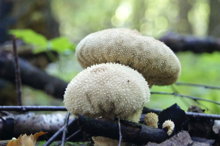 Puffballs in the forest in the autumn