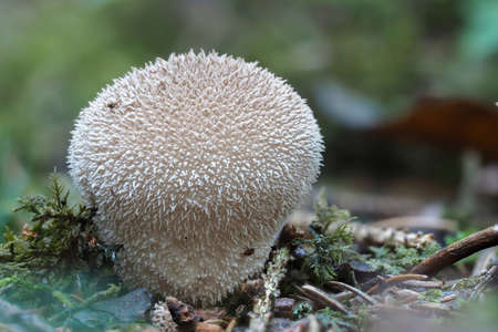 lycpperdon spp mushroom on the forrest floor