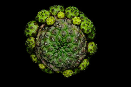 Close up top view of Sulcorebutia rauschii cactus plant. Isolated on black background color. image photo
