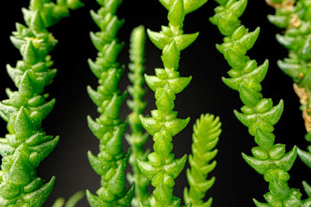 Succulent plant leaves on black background close up