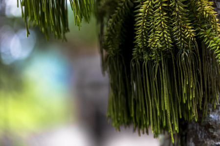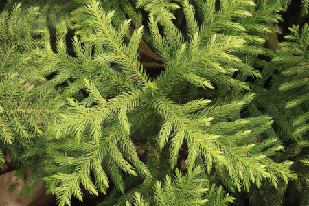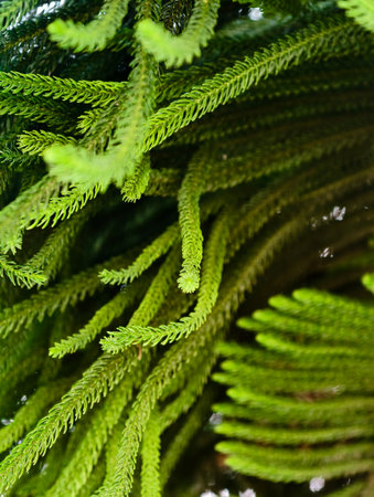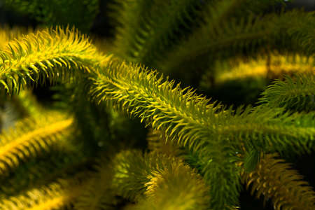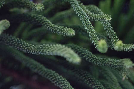 Abstract Norfolk Island pine background, closeup selective soft focus