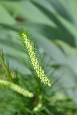 Spring greens. Vegetable green background. Euphorbia cyparissias - cypress spurge..