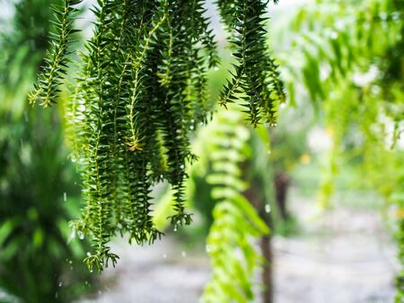 Abstract Norfolk Island pine background, closeup selective soft focus