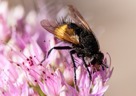 Close-up of a big fly on a flower
