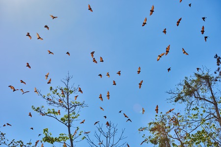 Beautiful Bat flying in the forest. Lyle's flying fox