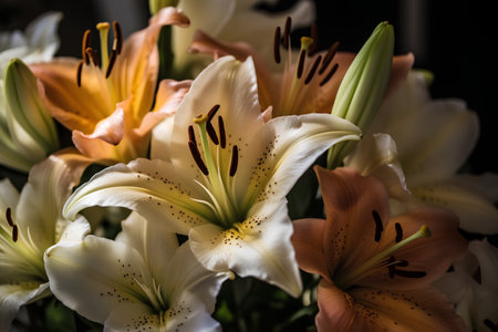 bouquet of lilies on a dark background, close-up