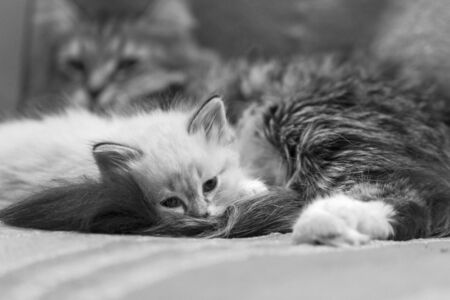 little newborn cat sleep, close up image