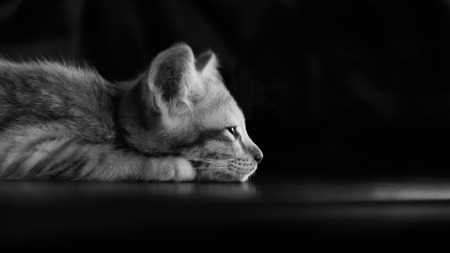 kitten lying down in the dark