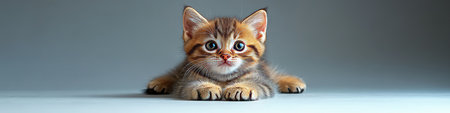 Adorable tabby kitten stretches out curiously, its big eyes full of wonder and mischief.