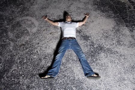 Unconscious guy after heart attack in the outdoor