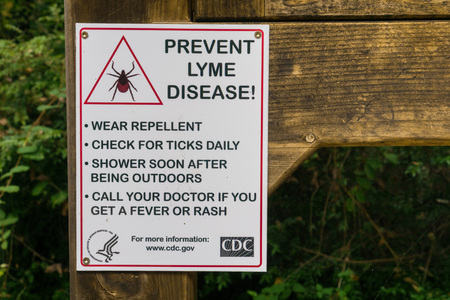 August 15, 2017 La Honda/CA/USA - Prevent Lyme disease sign in Portola Redwoods State Park, Santa Cruz mountains, California