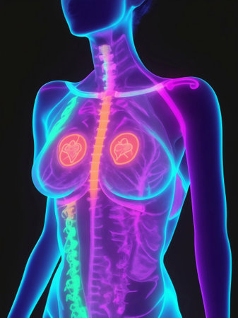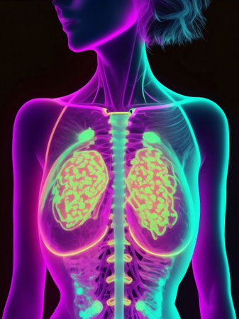 Breast cancer x-ray, Generative AI Illustration.