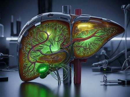 Detailed illustration of human liver anatomy in a laboratory setting