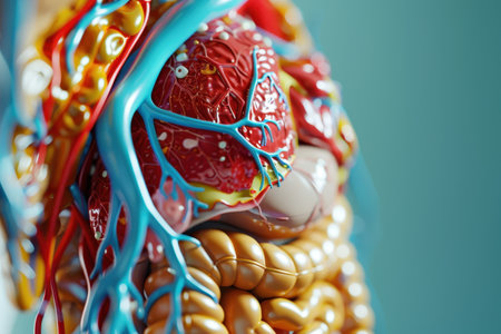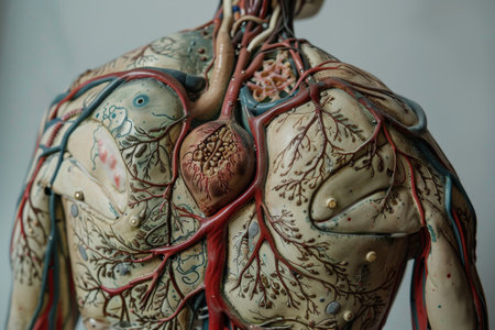 Detailed anatomical illustration showcases human circulatory and respiratory systems, aiding in educational and health-related discussions for students and professionals.