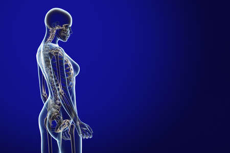 Futuristic 3D anatomy illustration of human skeleton generated by artificial intelligence