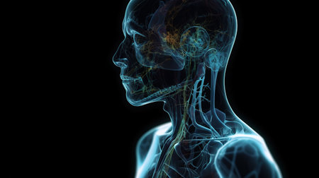 A captivating digital depiction of the human nervous system, highlighting the brain and spinal cord with glowing neural connections, perfect for educational materials.