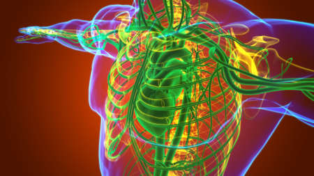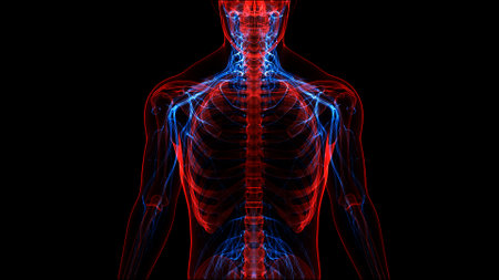Human Skeleton Anatomy With Circulatory System and Lungs For medical concept 3D Illustration