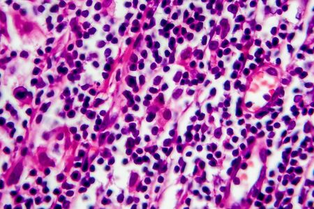 Hodgkins lymphoma, light micrograph, photo under microscope. High magnification