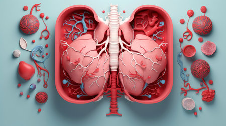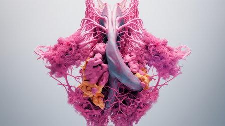 Healthy lungs inhaling breath vapor, anatomy illustrated generated by artificial intelligence