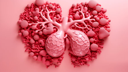 An artistic visualization features a pair of human lungs, with elaborate branching structures resembling trees. This imaginative depiction highlights the intricately anatomical details and textures