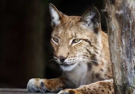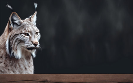 Eurasian lynx portrait on dark background with copyspace