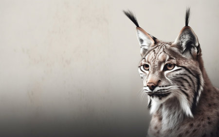 Portrait of a beautiful lynx on a gray background with copy space