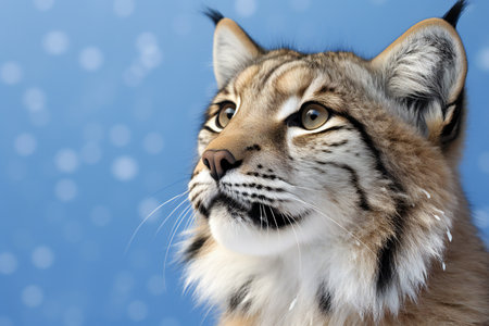 Close-up portrait of Eurasian lynx cat on blue background