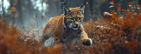 Iberian lynx chasing a bird, hunter