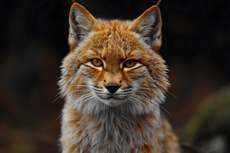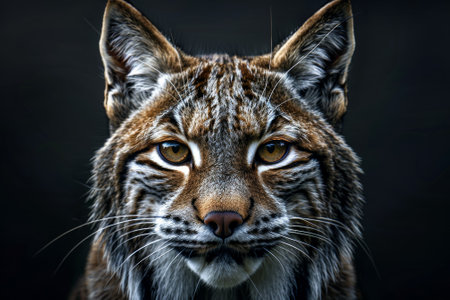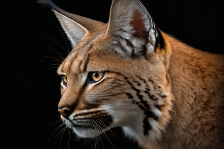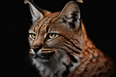 The head of a red bobcat from Canada, set off against a black background. Generative AI
