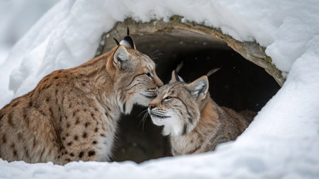 Frosty Feline Frolic Lynxes Play in Snowy Forest