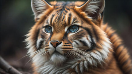 Close-up of a tiger with blue eyes in the forest. generative ai