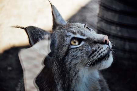 Black white lynx close-up at the zoo