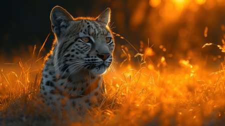Snow Leopard in Golden Light at Dusk
